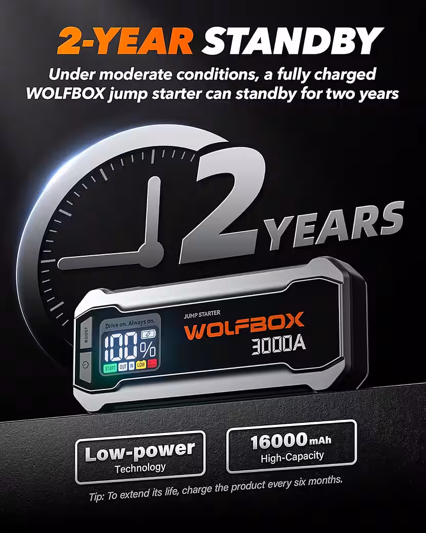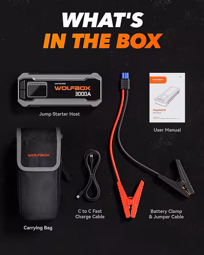 - This car battery jump starter features a powerful 16000 mAh battery, perfect for 12V vehicles, including cars, trucks, boats and large vehicles.