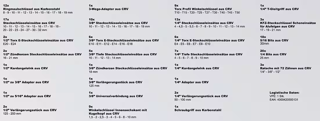 - 157-piece socket wrench set made of high-quality chrome vanadium steel – durable & resistant