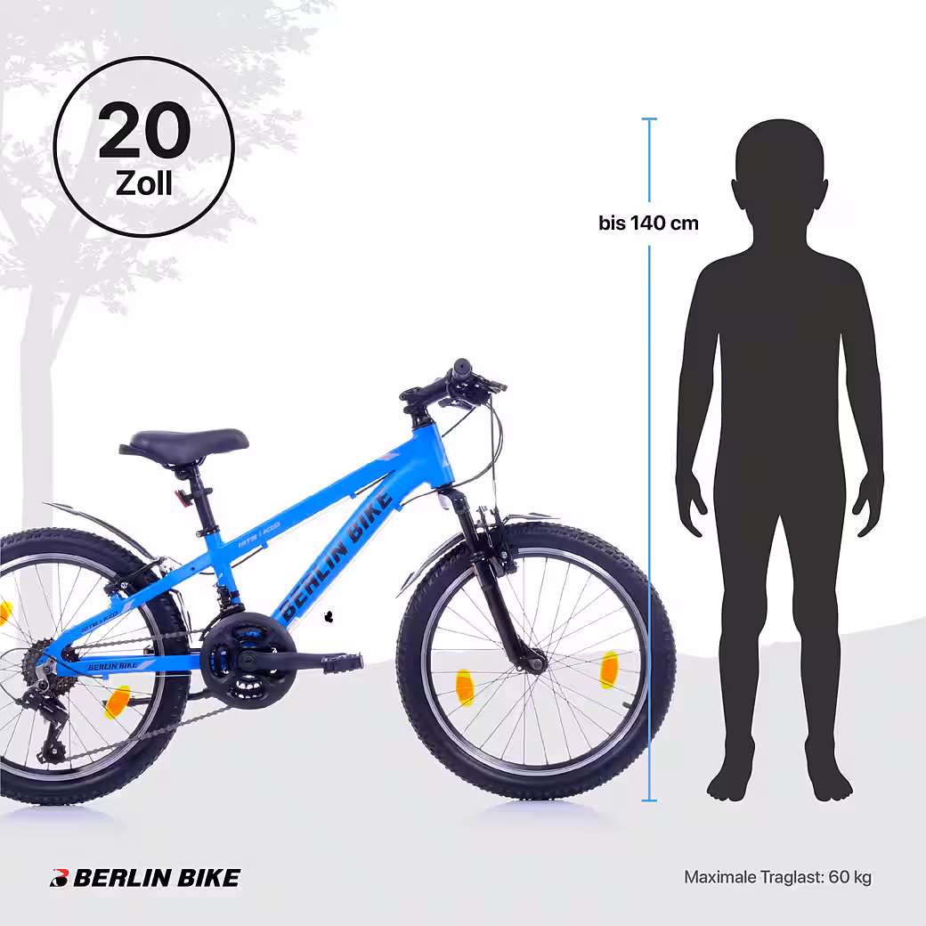 This 20-inch mountain bike is ideal for daily commutes to the park or school. The aluminum frame is rustproof and won’t rust even with scratches or signs of wear, ensuring a long lifespan for the bike. The 21-speed derailleur gears provide smooth and consistent shifting. You get solid quality at a reasonable price. The bike is equipped with an air-sprung suspension fork for added comfort on rough terrain. The bike arrives partially assembled; final assembly is required by the customer. A suitable tool kit is included. The pedals, handlebars, saddle, and front wheel need to be attached by the customer. The brakes are pre-installed and require adjustment. The gears are pre-installed and pre-adjusted.