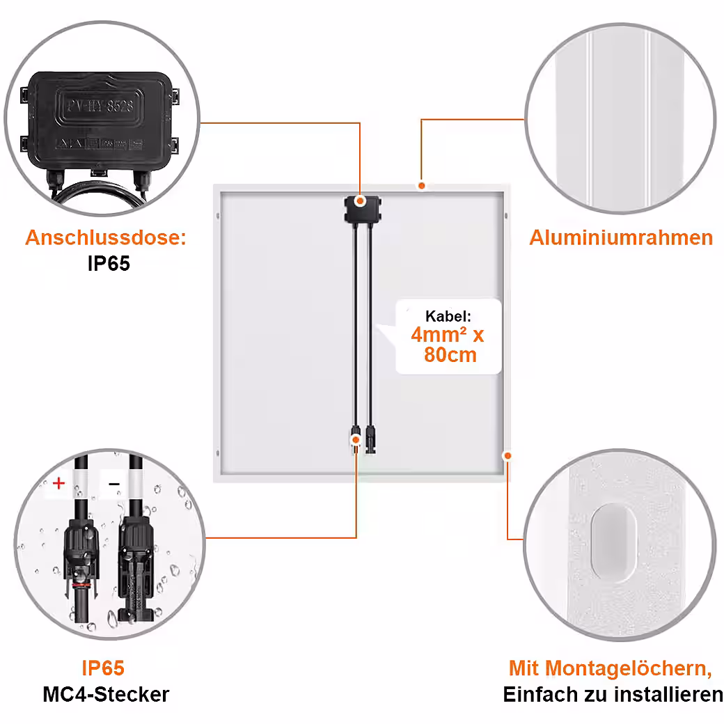 • Easy installation – With pre-assembled junction box and cables, lightweight design for motorhomes, cabins or off-grid systems.