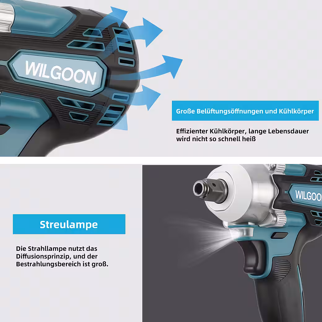 • 21V battery-powered impact wrench.