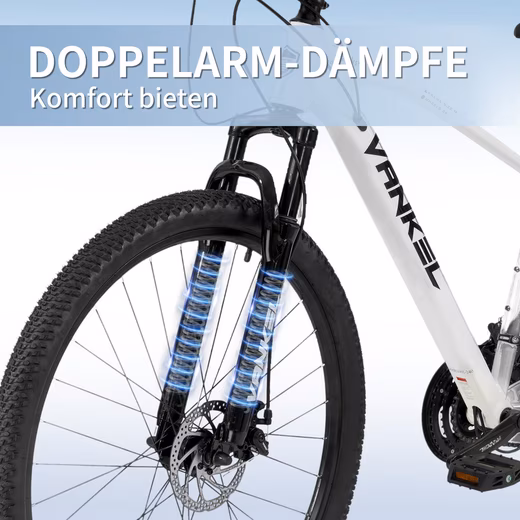 A stable diamond frame combined with a shock-absorbing suspension fork ensures a comfortable riding experience – ideal for everyday use, touring and light terrain.
