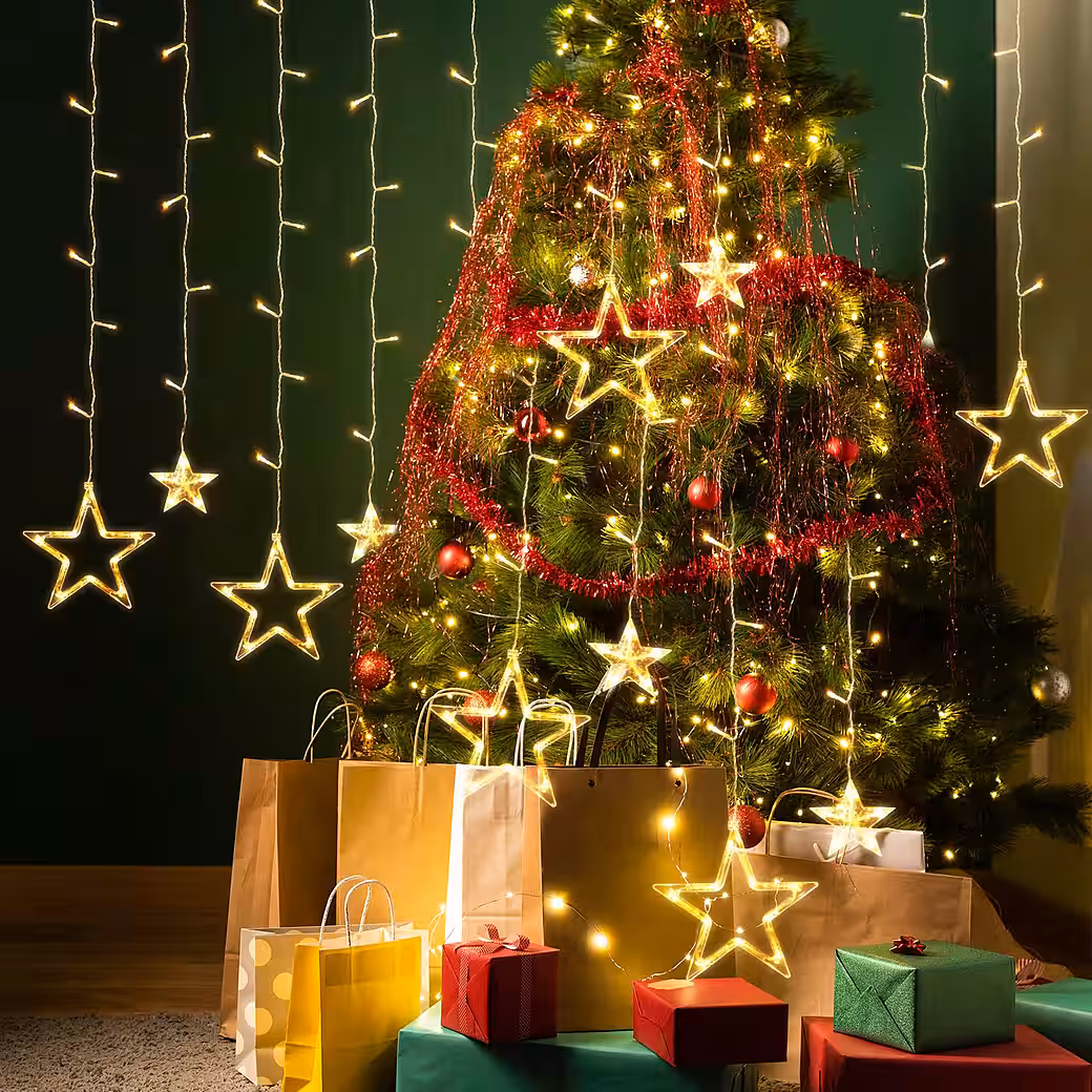• Ideal decoration: The star string lights are suitable for windows, doors, walls, Christmas trees, etc. for festive decoration for Christmas, New Year’s, weddings, etc.