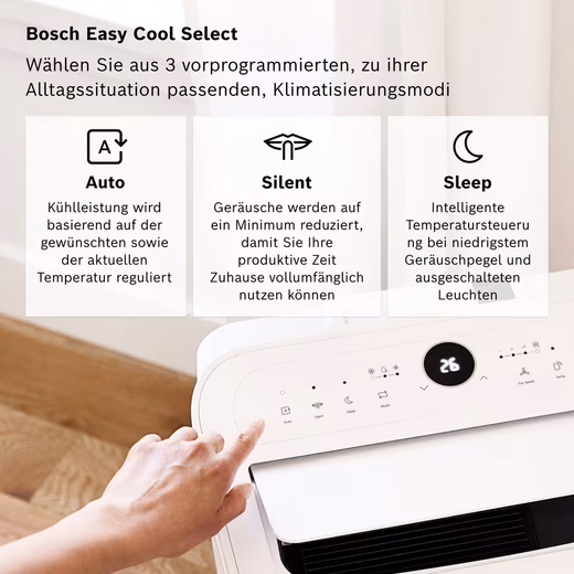 - Bosch Easy Cool Select: Thanks to the pre-programmed modes (Auto Mode, Silent Mode, Sleep Mode), you can select the right setting for your situation with just one click.