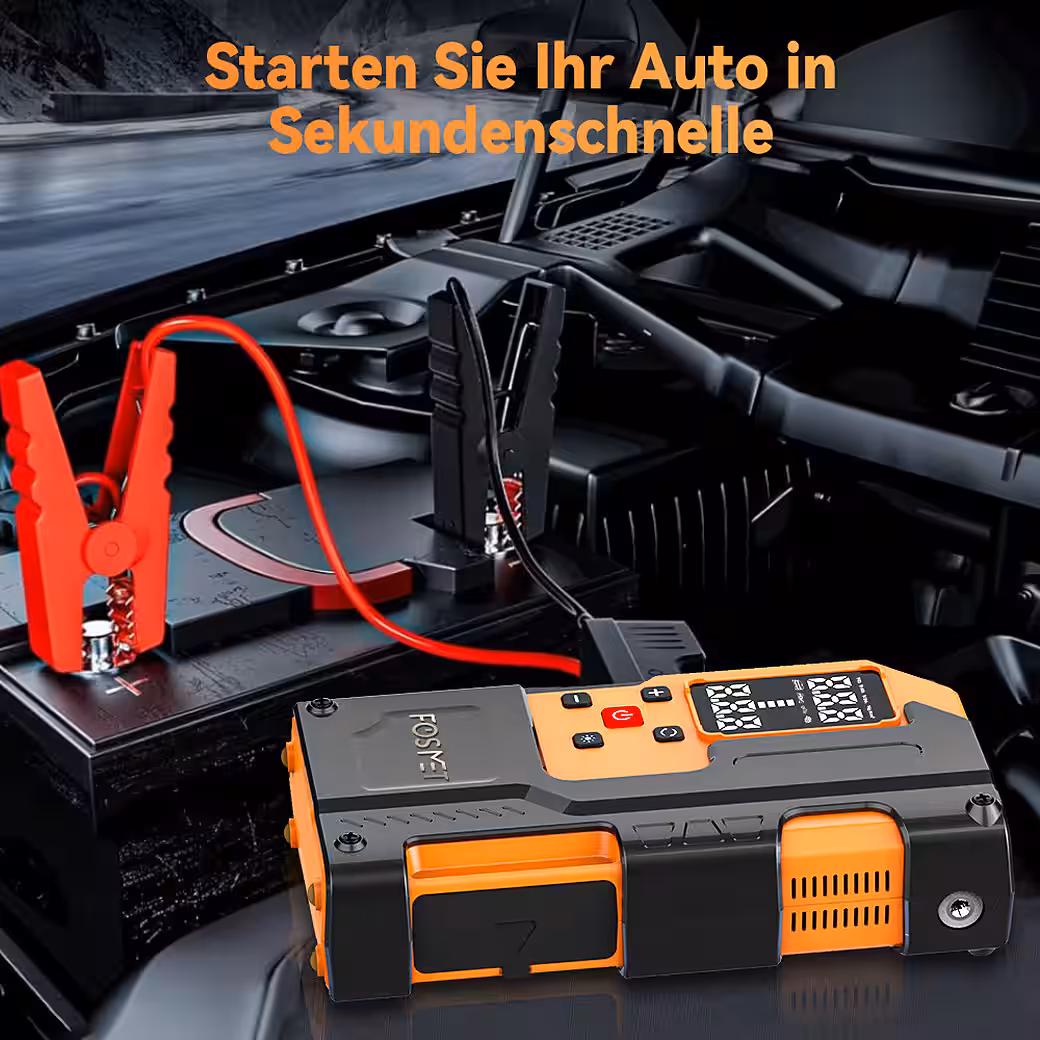 This 7000A 12V car jump starter with a 150PSI compressor is a powerful emergency tool and a practical gift idea. Ideal for family and friends who travel or drive frequently. With smart clamps, an LCD display, an 800 lm LED light, 5 inflation modes, a comprehensive accessory kit, and 10 safety features, it offers safety and convenience in any situation.