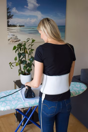 Abdominal and back support belt with integrated heating pad Relieves acute back pain, supported by therapeutic heat