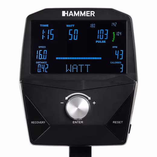 The Black Backlight Display provides you with all important training data such as distance, speed, time, revolutions per minute (RPM), training level and heart rate in a clear, high-contrast display.