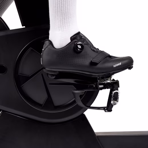 The double-sided pedals with click and cage system offer max. Flexibility in training. Depending on your choice of shoes and training intensity, you can switch between a tight binding and free pedal entry.