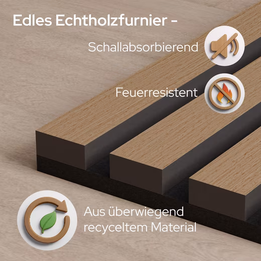 The surface made of high-quality real wood veneer convinces with its warm, natural look. Available in Light Oak or Dark Oak, the panels bring a modern and at the same time homely ambience to any room – perfect for style-conscious interior design.