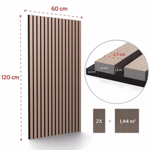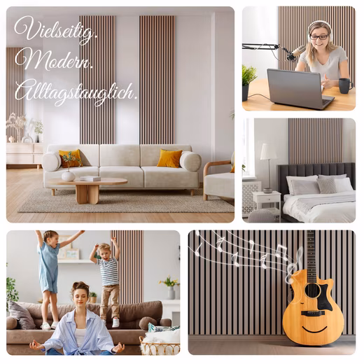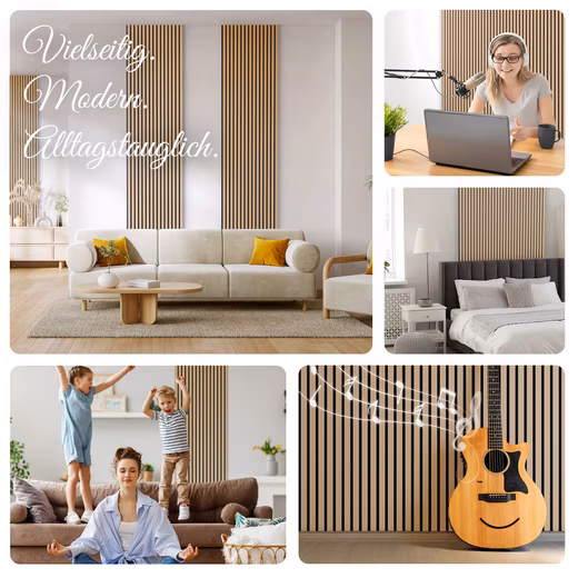 Whether in the living room, office, recording studio or home office – the panels absorb disturbing noises, reduce reverberation and ensure a harmonious sound image. Thanks to their elegant wood look, they blend seamlessly into any interior and set stylish accents on the wall or ceiling.