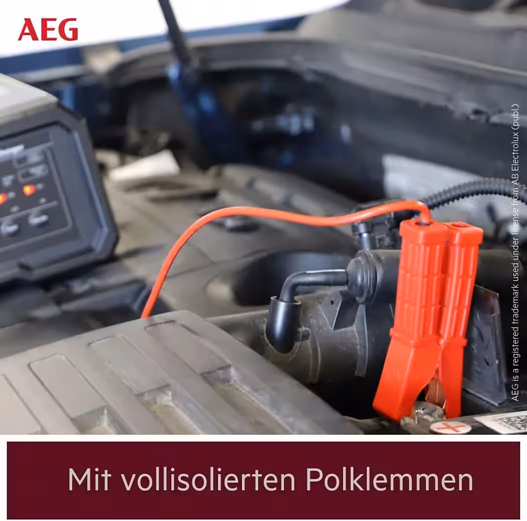 Suitable for the following battery types: Lead-acid batteries (WET, MF, EFB, AGM, Li-ion) | Provides reliable jump-start assistance for 6/12V DC vehicle batteries | The AEG battery charger has the following fully automatic functions: diagnostics, charging, and maintenance | Maintenance function for seasonal vehicles or classic cars | Intelligent control, reverse polarity protection, overcharge and short-circuit protection, spark protection, overheating protection, and overcurrent protection. A trickle charger with multiple protection features ensures safe charging anytime, anywhere | Clear and easy to use: All functions and processes can be set on the large LED display. Error codes are also easy to read. The LED lights contribute to excellent display quality. | Color: black |