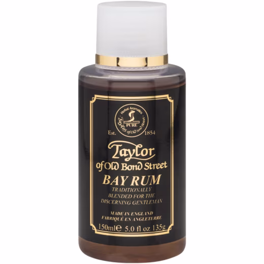 Taylor of Old Bond Street Bay Rum 3 in 1, 150 ml. An aftershave, eau de cologne, and hair lotion in one. It has an invigorating, refreshing, and antiseptic effect. Made from natural products according to a traditional English recipe, this spicy-exotic blend of bay leaves combined with clove pepper and Caribbean rum has a skin-conditioning, circulation-stimulating, and antiseptic effect. Made from natural essences. Made in Great Britain.