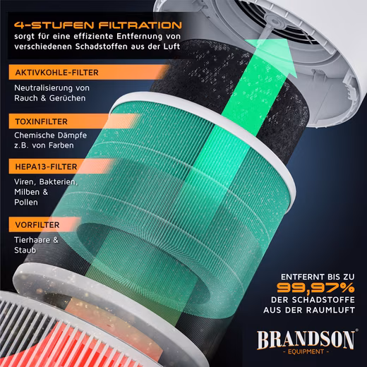 Scope of delivery: Brandson air purifier with 4-stage filter, power supply and user manual