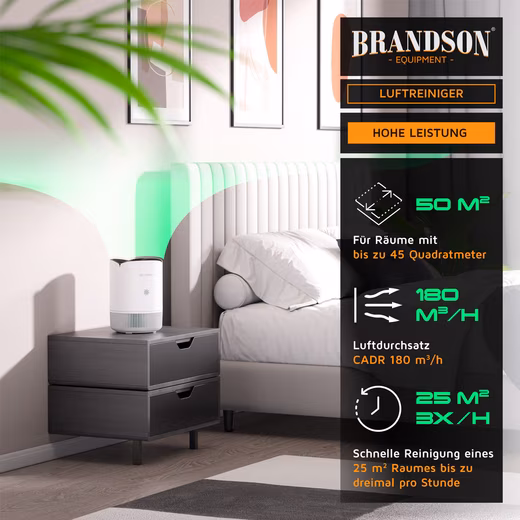• Also a blessing at night: With only 25 dB in sleep mode, your Brandson air purifier is whisper-quiet and can be used in the bedroom without any problems.
