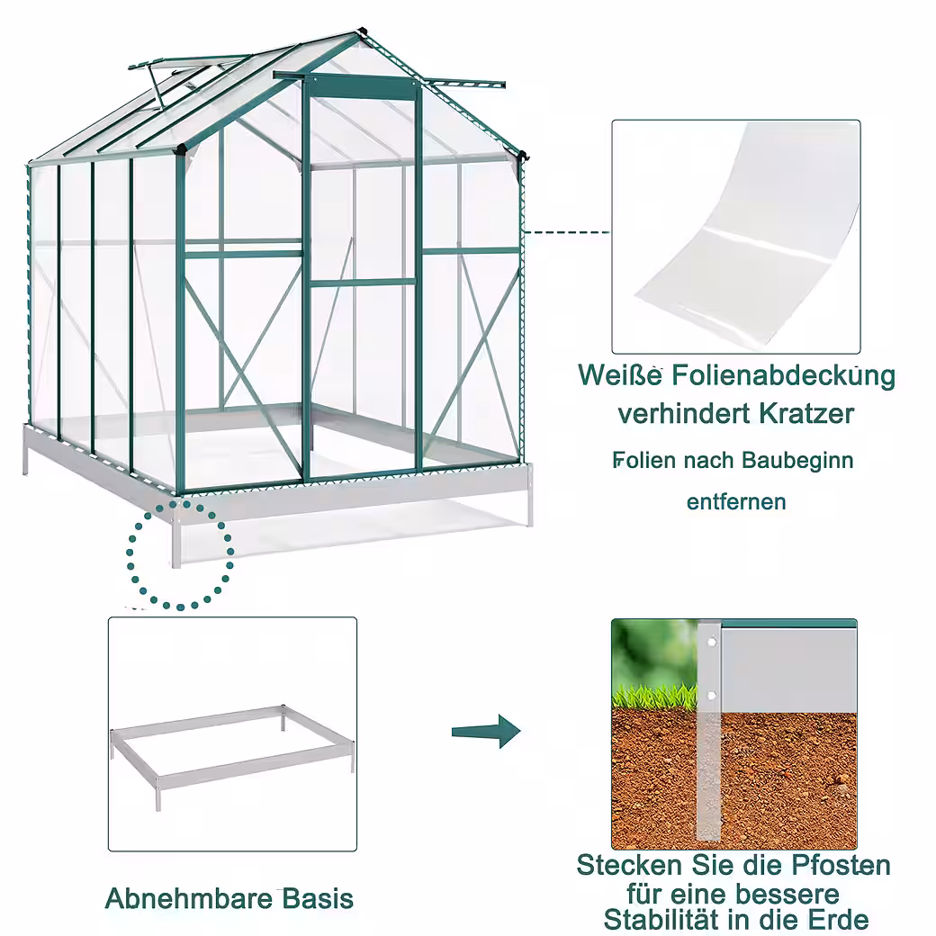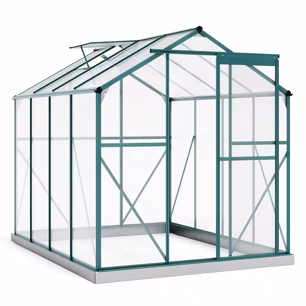 • The galvanized steel foundation provides additional stability for your greenhouse.