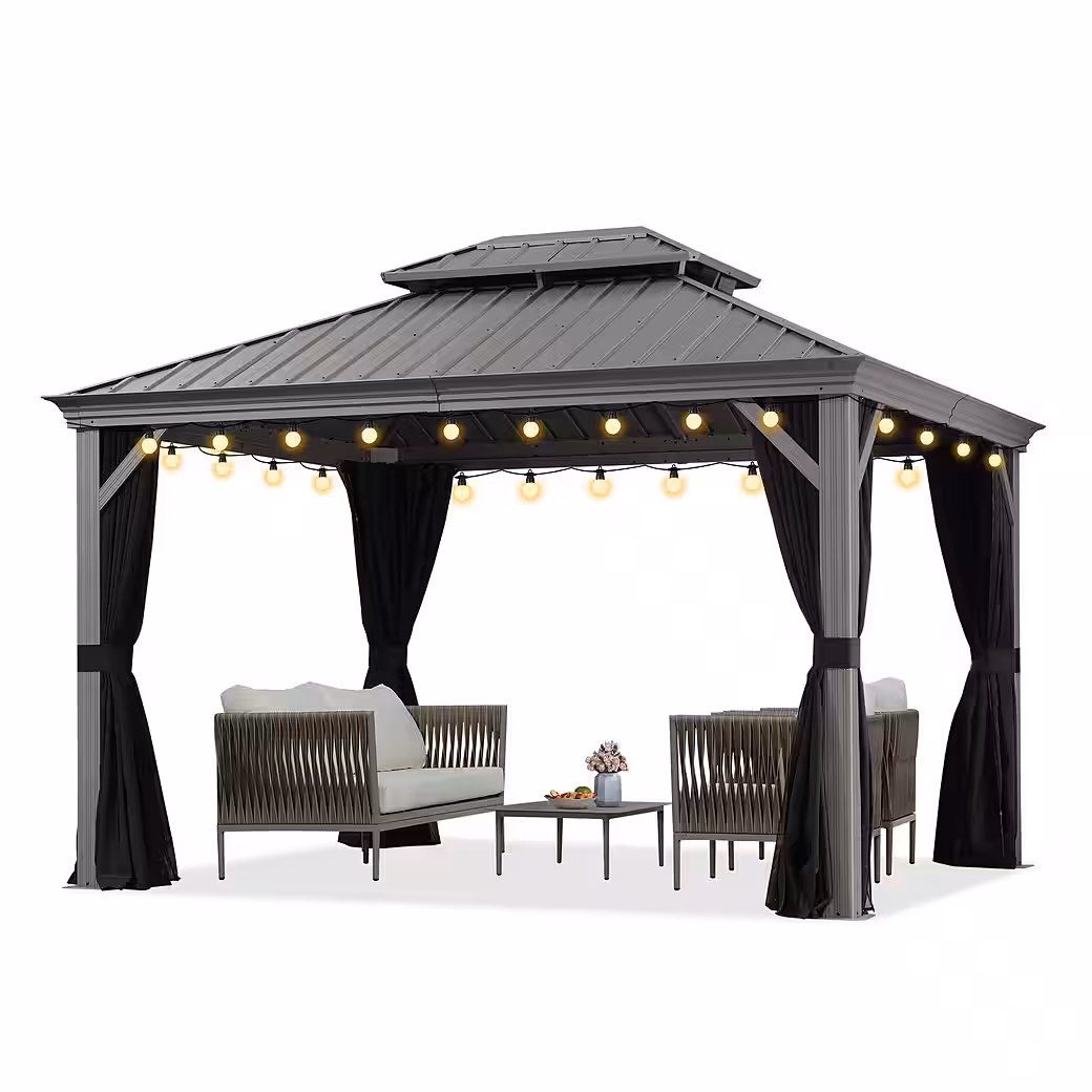 Anchor the gazebo immediately after installation. As a purchaser of this product, you should check with your local city or town council and the applicable HOA guidelines regarding building codes and/or zoning regulations for your area before purchasing. This structure may require a permit. |