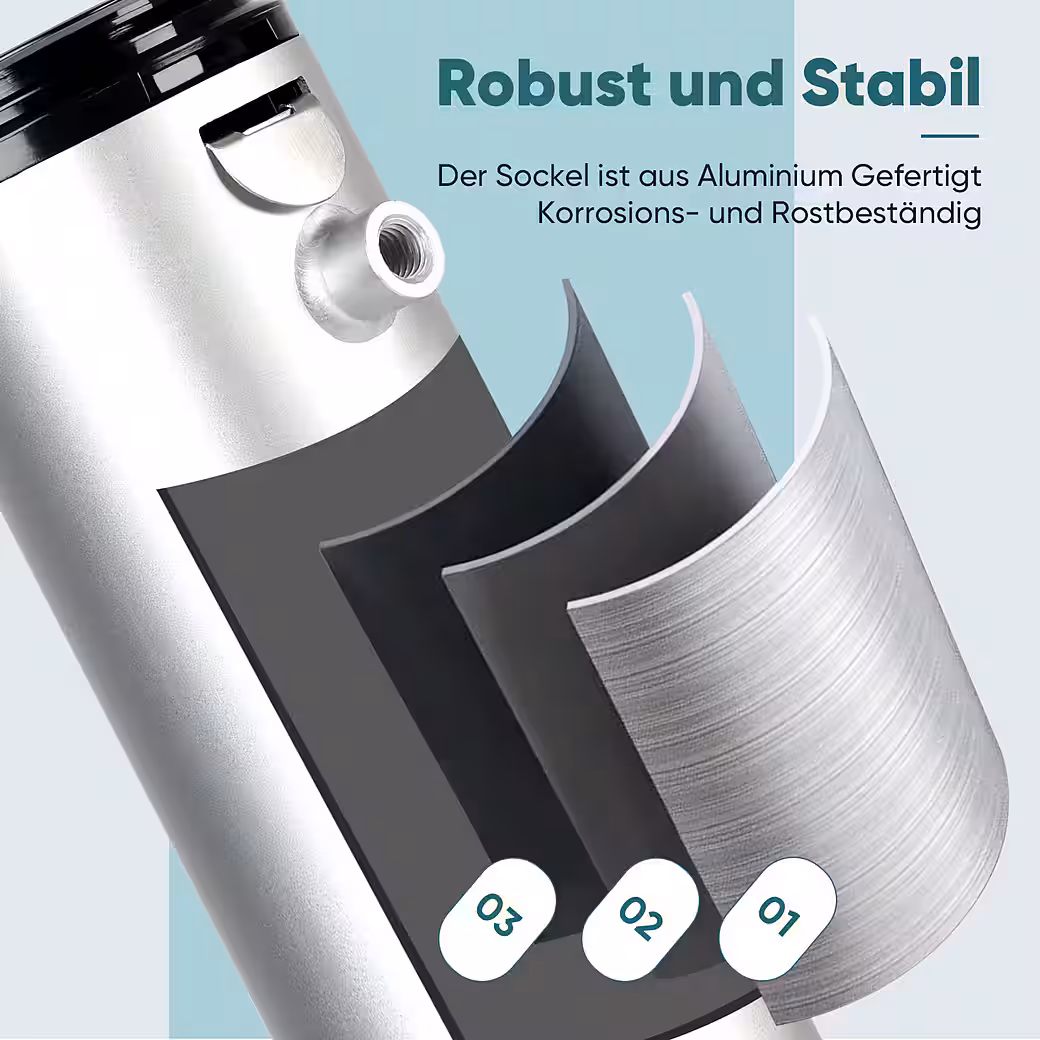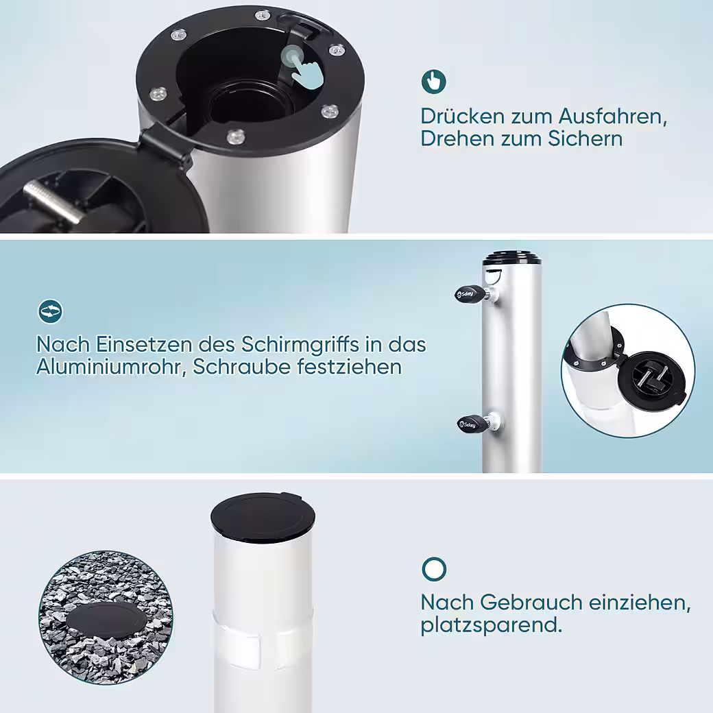 - Material and durability: The parasol stand is made of anodized aluminum, corrosion-resistant, weatherproof, stable and robust.