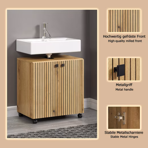 - Keep your bathroom effortlessly clean by simply rolling the cabinet to the side when cleaning the floor – a practical solution for everyday life.