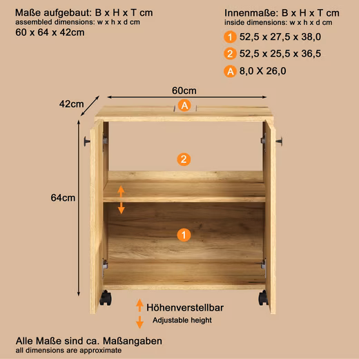 - Designed as a mobile and spacious addition to your wash area, this vanity unit measures 60 to 80 cm in width, 64 cm in height and 42 cm in depth.