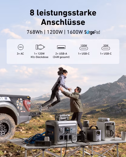 POWER FOR MULTIPLE DEVICES: Forget about any compromises. Connect multiple devices and power them with a power rating of 768Wh and 1200W – efficient enough for 89% of all devices.