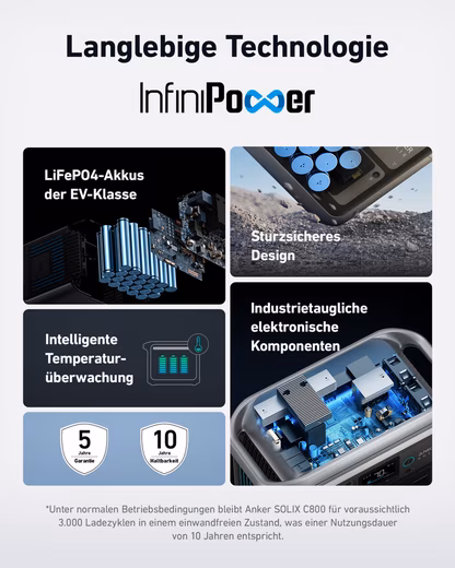 DAILY POWER FOR 10 YEARS: Thanks to InfiniPower technology, you have electricity for an entire decade every day. This battery lasts 6× longer than alternatives, with over 3,000 charge cycles.