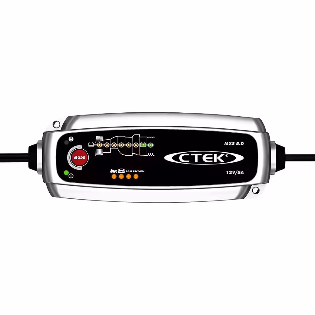 The MXS 5.0 features automatic temperature compensation to achieve optimal charging performance even under extreme conditions. This advanced, microprocessor-controlled battery charger delivers unparalleled performance when charging lead-acid batteries between 1.2 and 110 Ah. Its integrated automatic temperature compensation ensures optimal charging performance even under the most demanding conditions. The MXS 5.0 also includes battery diagnostics to determine if the battery can accept and hold a charge, a patented automatic desulfation program, an AGM option to maximize the lifespan of most start/stop batteries, and a dedicated Recond mode for reconditioning deeply discharged batteries. The MXS 5.0 utilizes CTEK’s patented Float/Pulse system, the most efficient maintenance charging mode when a battery remains connected to the charger for extended periods.