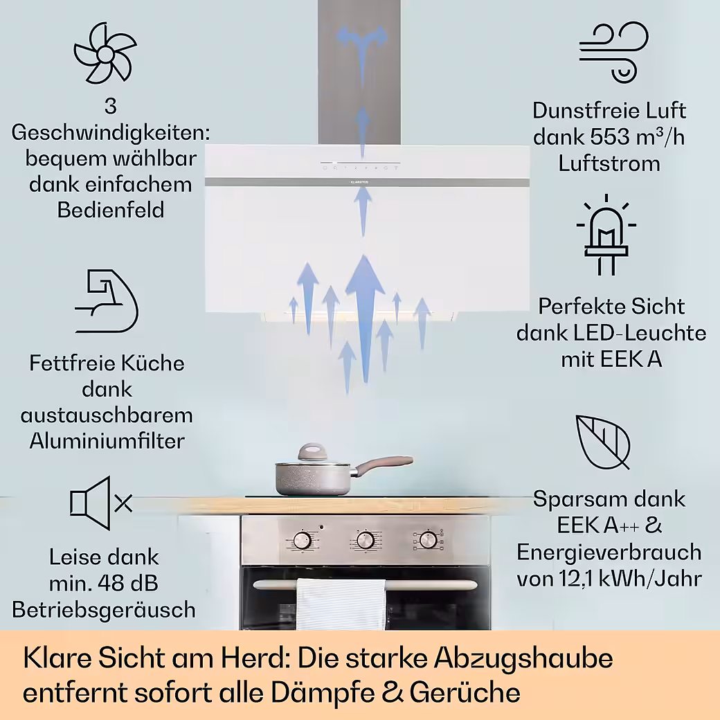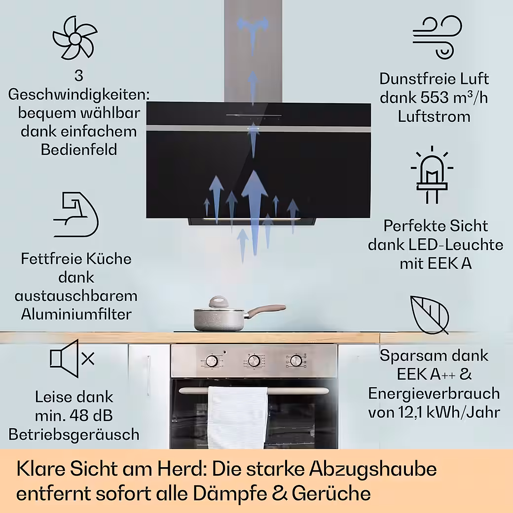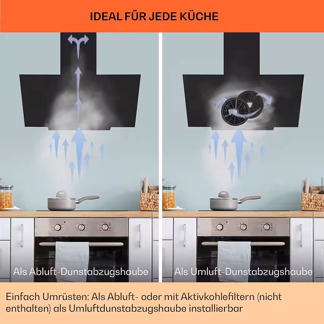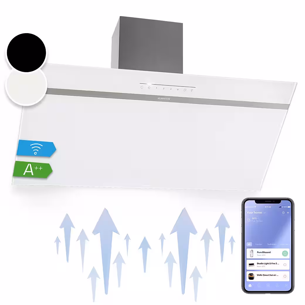 Welcome to the next generation of extractor hoods. The Klarstein Ava extractor hood enriches every kitchen with a diligent helper in removing steam and cooking odors.