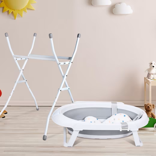 High-quality materials: Our baby carrycot with stand is made of durable material, including powder-coated iron pipes, TPR (thermoplastic rubber) and PP (polypropylene). This combination not only ensures stability but also safety for your baby during the bathing process.