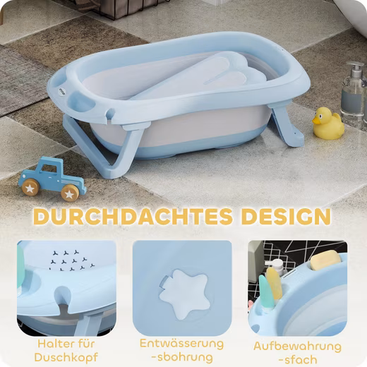 Foldable/Non-slip bottom/With drain and shower holes/With storage compartment/With bath support |