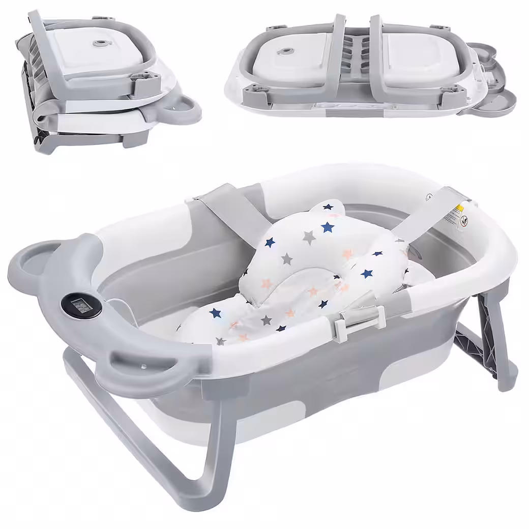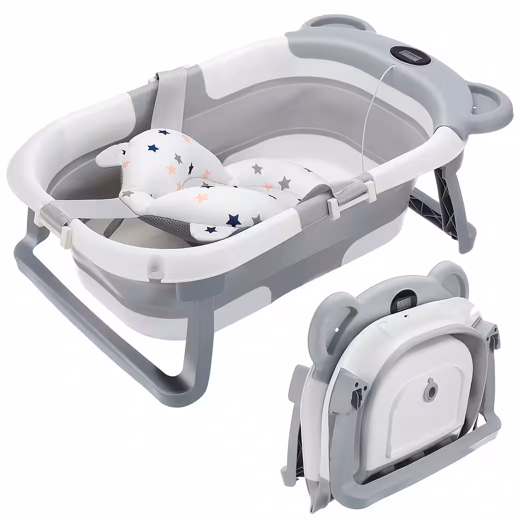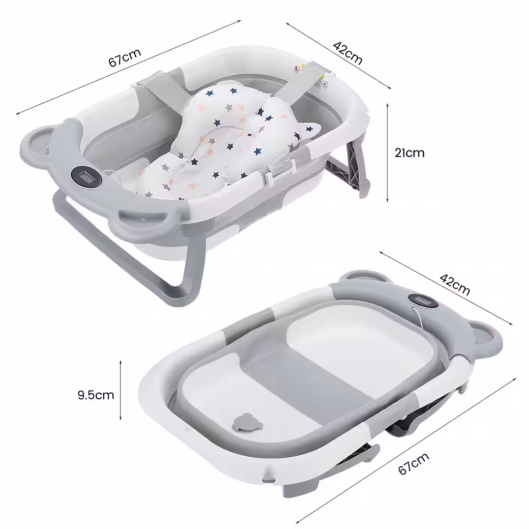 Double foldable collapsible designThe improved foldable baby bathtub can be effortlessly folded down to a thickness of less than 10cm in just a few seconds.