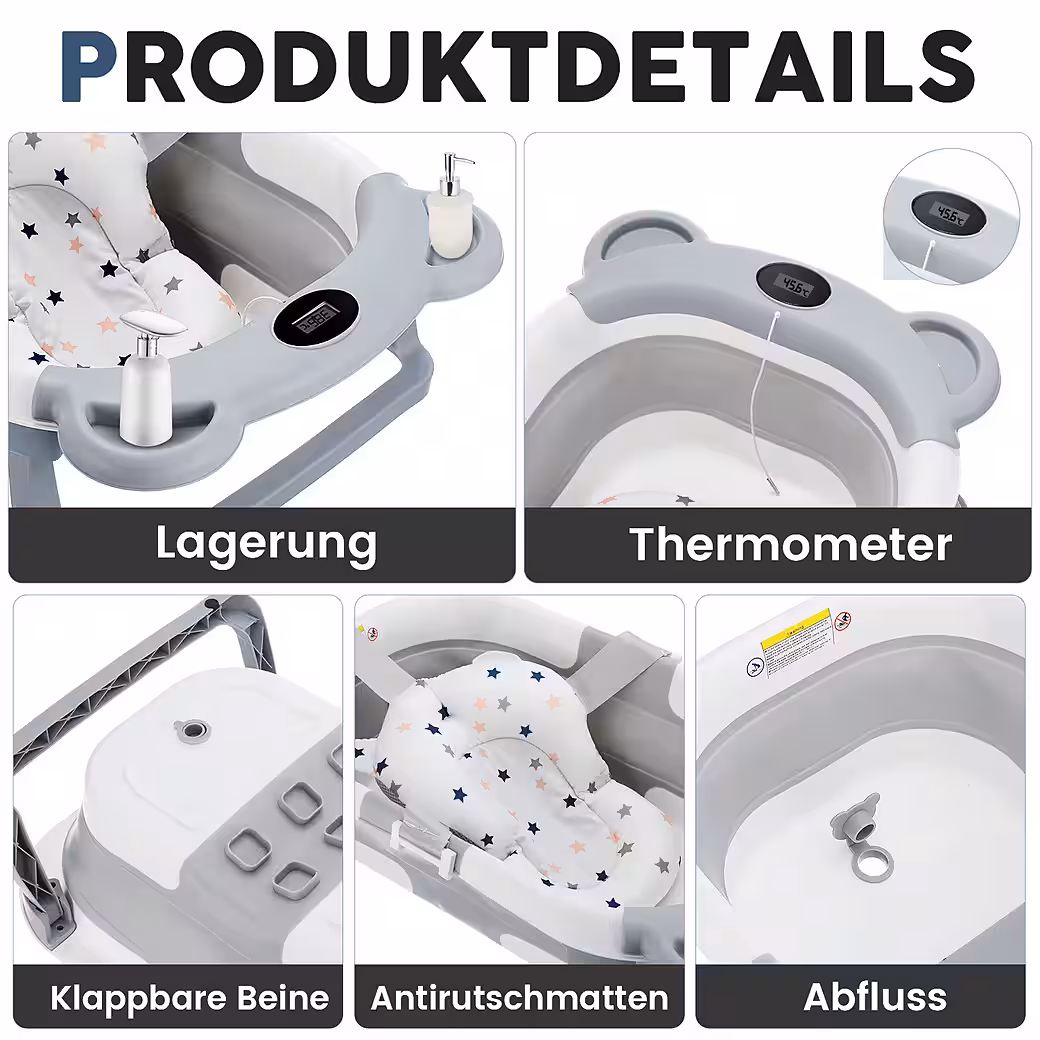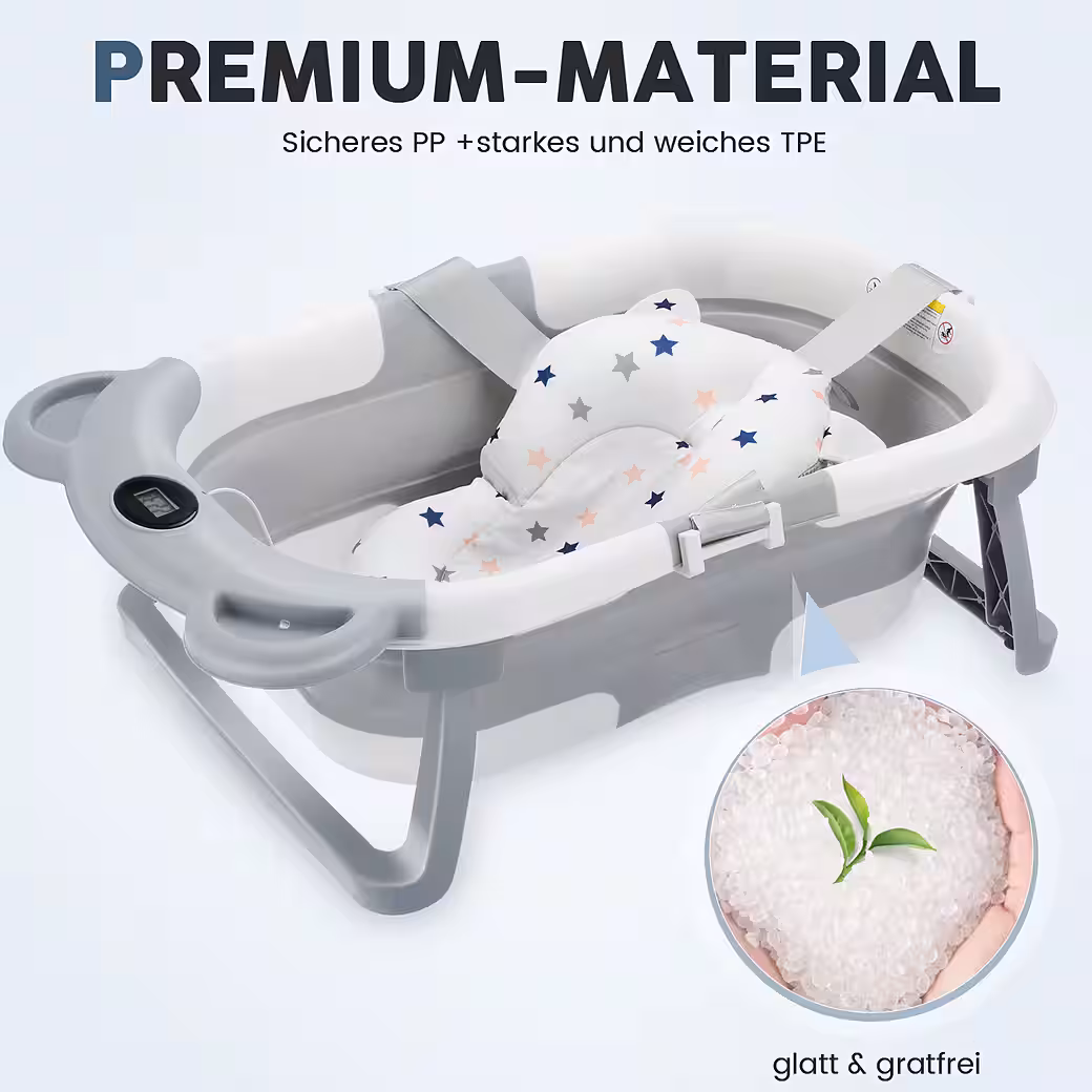 High-quality materialThis bathtub is designed to accompany your baby from newborn to toddler (0-24 months). Made from high-quality PP+TPE materials, our baby bathtub guarantees safety, durability, and peace of mind. It is odor-resistant, bite-proof, and gentle on your baby’s skin.
