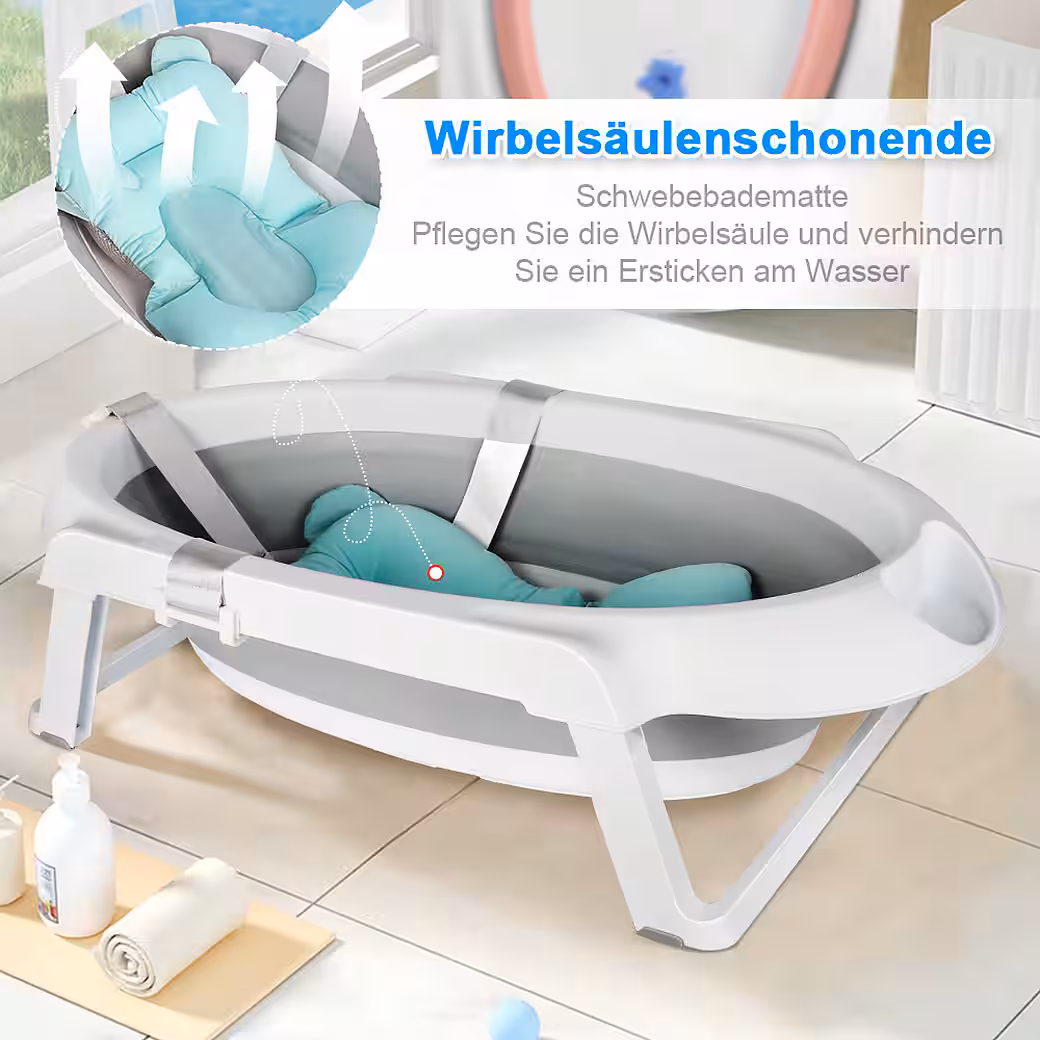 Including a practical bath mat: Our baby bathtub is equipped with a soft bath mat that can hold the baby securely and protect the baby’s spine, and also provides reliable support for the baby’s head and neck. Floating in the water also increases the fun of bathing the baby, and you can free your hands to clean the baby’s body.