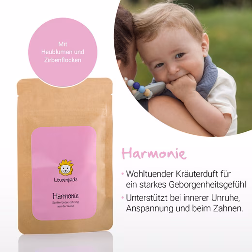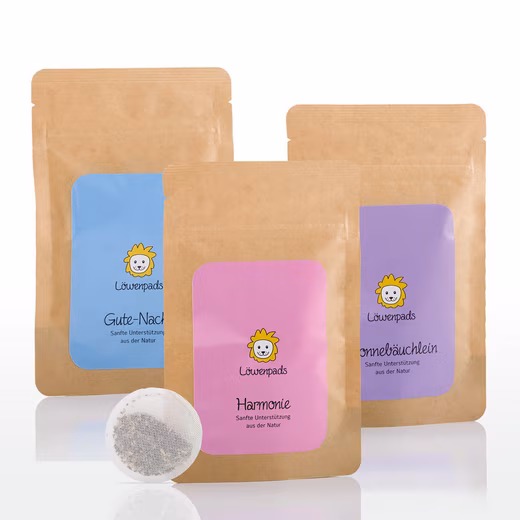 This 3-pack of herbal pad refills contains three resealable packs, each with five herbal pads in the varieties Good Night, Harmony, and Tummy Time. All varieties are suitable for use from birth and naturally support sleep problems (Good Night), inner tension and teething (Harmony), and a relaxed tummy feeling (Tummy Time). These three herbal pad varieties are true must-haves for common childhood ailments and a valuable addition to your home medicine cabinet. When used with the Löwenkind muslin cloth with integrated pad pocket, application is simple, and the effect of the herbs is enhanced by body heat.