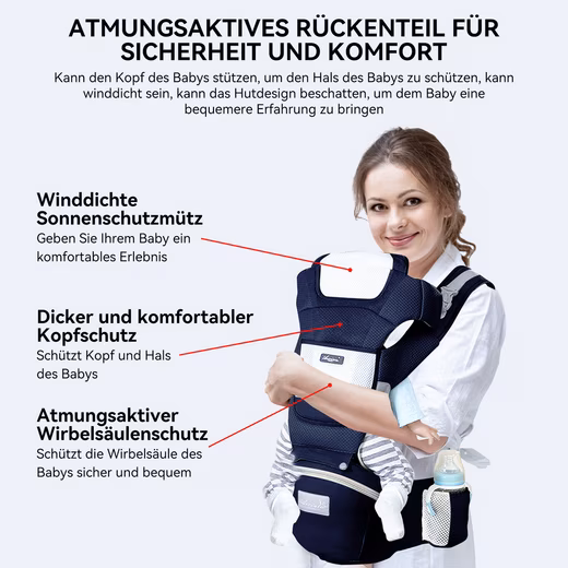 • Ergonomics and comfort: The 3D hip support of our baby carrier supports a natural “M” shape and distributes weight evenly to ensure comfort for the baby.