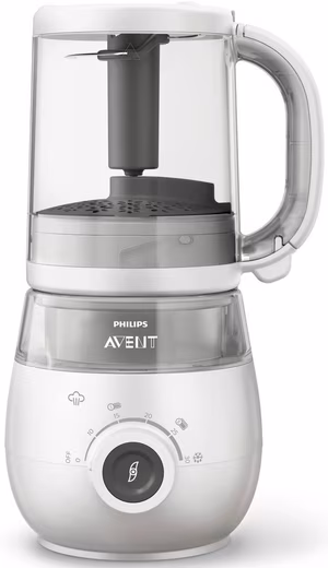 The Philips SCF883/01 4-in-1 baby food maker makes it easy to prepare nutritious meals for every little one. You can serve the food directly or store it in the included container and reheat it later using the simple reheat and defrost functions. Thanks to the special steam cooking method, the meals are prepared in a healthy way, naturally supporting your child’s development. The 1000ml container allows you to prepare up to four meals at once, saving you time. You can also adjust the preparation and consistency to suit your baby’s developmental stage. The dishwasher-safe material makes cleaning a breeze.