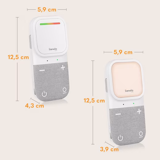 The baby monitor has 6 volume levels and can also be muted if needed – for example, if you are attending an important meeting while working remotely. LEDs on the receiver then indicate the sound level in the nursery .