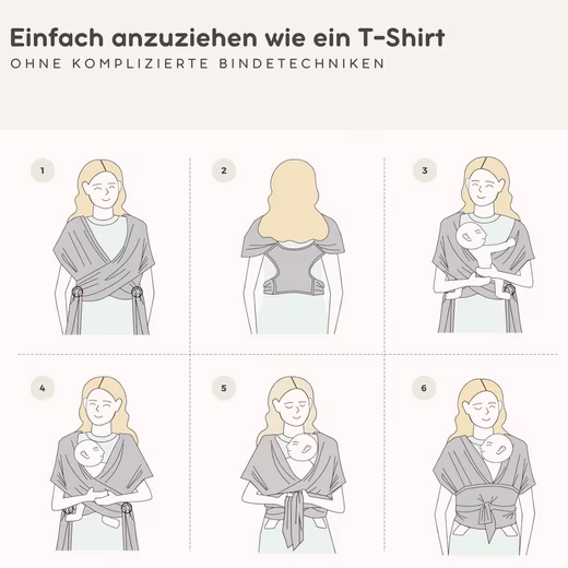 - EFFORTLESS TO PUT ON: Our baby sling can be put on quickly and easily like a T-shirt – without complicated tying techniques.