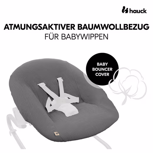 This cover is a perfect fit for baby bouncers like the Hauck Alpha Bouncer 2in1, Alpha Bouncer Deluxe, and Alpha Bouncer Premium newborn inserts, protecting the original cover of your bouncer. Thanks to the soft, breathable muslin cotton cover, your baby will be comfortable in the highchair or bouncer all year round. The cover is gentle on baby’s skin, keeping them warm in winter and cool in summer, ensuring many moments of comfort for your baby.