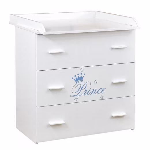 The changing table with three large drawers offers ample space for all changing supplies.