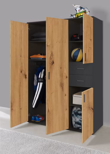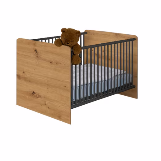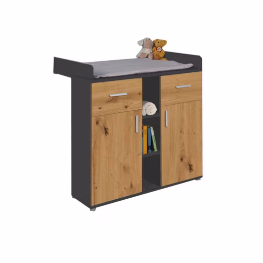BMG Furniture Elli Children’s Room Set, Wardrobe with 4 Doors and 2 Drawers, Changing Table and Baby Bed in Artisan Anthracite.