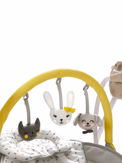Incl. detachable play arch with 3 gripping toys, individually removable.
