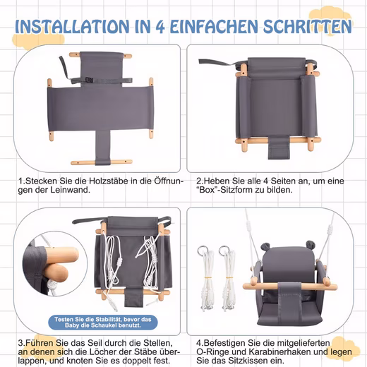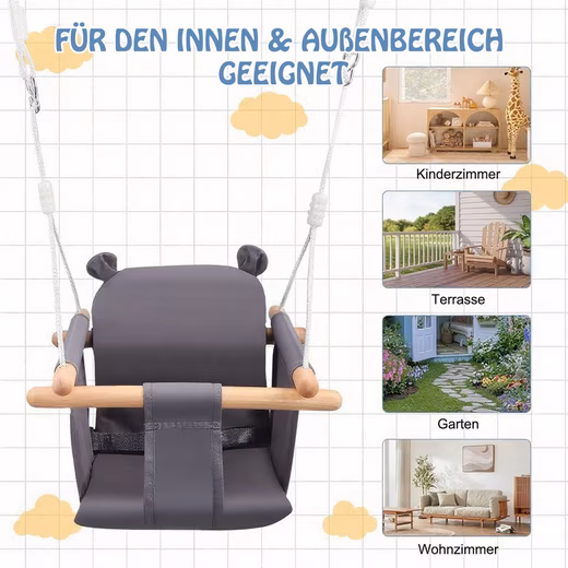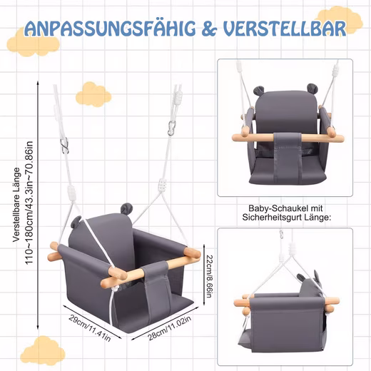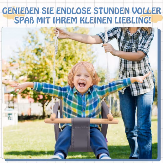 - Specially designed for babies and children: Ergonomic 28×28 cm swing seat for babies & children (6 months-5 years, up to 25 kg), square and comfortably shaped.
