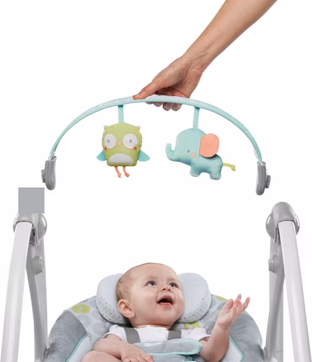 - Portable baby swing »Swing’n Go, Hugs & Hoots« with 5 swing speeds and timer function