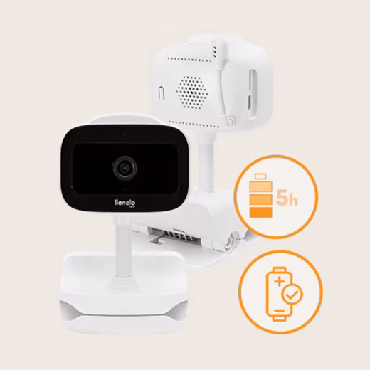 The lionelo Babyline Go is a wireless electronic baby monitor controlled via smartphone using the lionelo Smart App. Its built-in battery allows for up to 5 hours of wireless operation, making it much easier to move the device to another room. The intuitive app provides not only a live preview but also camera control, photo and video recording. With its unlimited range, you can keep an eye on your baby even when you’re away from home – and you can share the live view with an unlimited number of viewers. The baby monitor features a special notification system that reacts to sounds, movements, and changes in temperature or humidity in the room. A convenient clip on the bottom of the camera allows for easy mounting of the baby monitor in various locations.