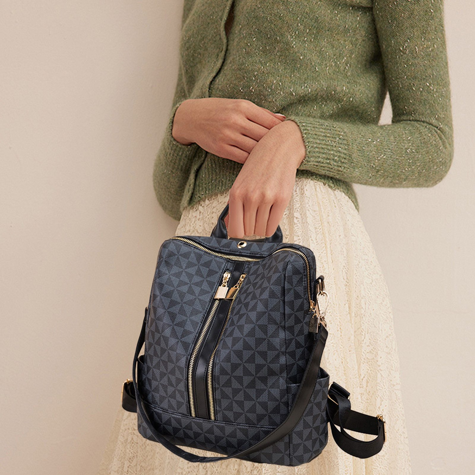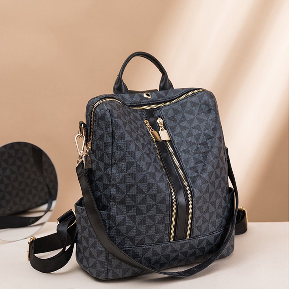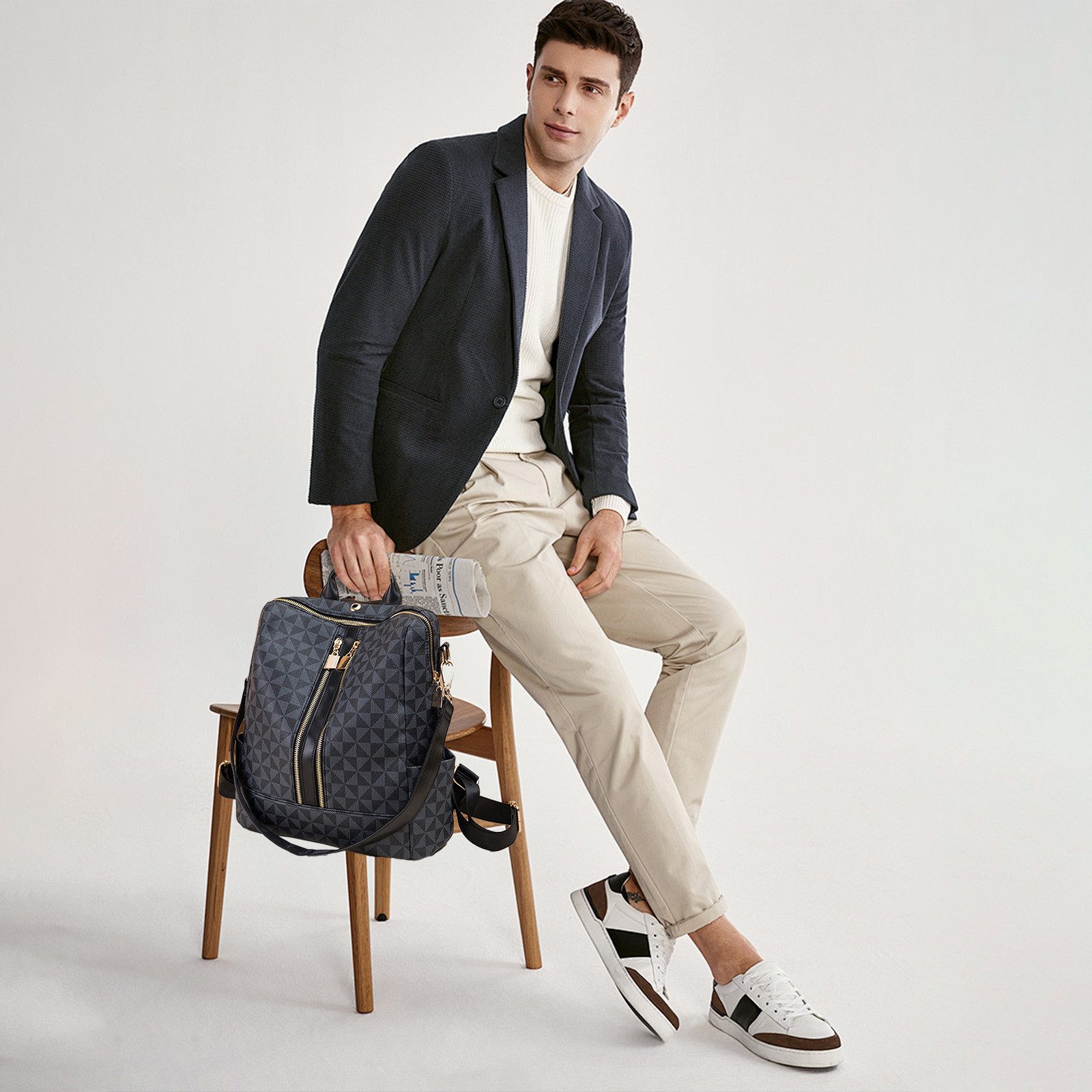 The backpack impresses with its robust synthetic leather exterior combined with a soft cotton lining. The retro look and stylish metal hardware, along with the high-quality branded zippers, give the backpack a modern yet timeless aesthetic. Furthermore, an anti-theft pocket on the back provides additional protection for your valuables, so you don’t have to worry about your safety while on the go.