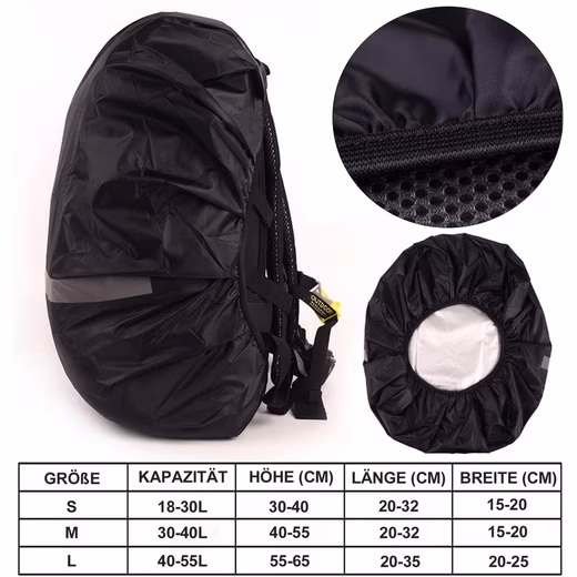 - Multiple sizes: 1 pack of waterproof backpack cover. S: 18–30L; M: 30–40L; L: 40–55L. Foldable, easy to carry – perfect choice for outdoor activities.