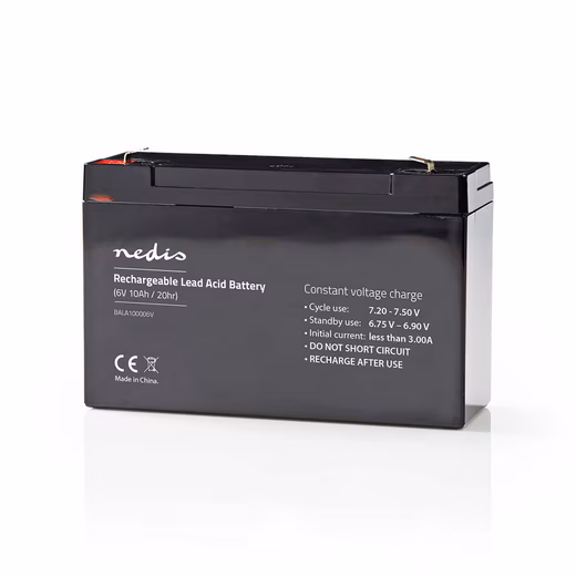 The Nedis lead-acid battery | 6 V | 10000 mAh impresses with its long endurance for emergency power applications. Ideal for everyday use.