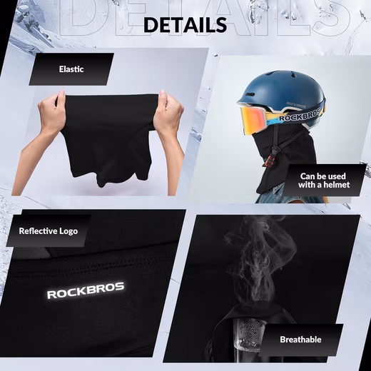 Soft Fabrics: The balaclava is made of breathable fabrics: 50% nylon, 38% polyester, 12% spandex. Four Needles and Six Threads: The four-needle, six-thread sewing process makes the stitches very strong and improves durability. 300g Polar Fleece: Perfect for cold weather, the polar fleece lining is warm, skin-friendly, and windproof. Reflective: The “ROCKBROS” logo on the balaclava reflects in the dark, providing you with added safety. How to Wear the Balaclava: It can be worn alone as a neck gaiter, mask, balaclava, half balaclava, etc. Quick-Drying: If you sweat, the quick-drying material quickly absorbs the perspiration and then evaporates.