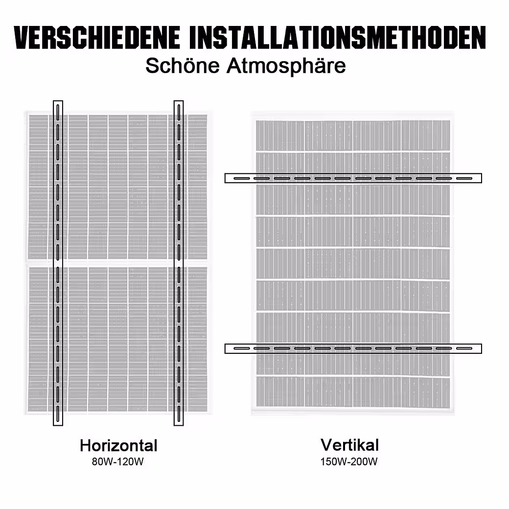 • Easy installation without drilling – clamping system for quick installation on balcony railings, roofs or terraces.