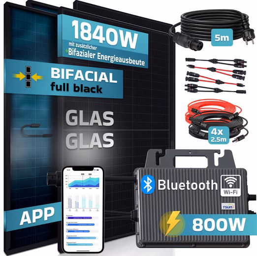 HIGH EFFICIENCY: With a module power of 1840 watts and additional bifacial energy yield, as well as high efficiency, it offers a high energy yield even in low light conditions. Output power 800 watts.
